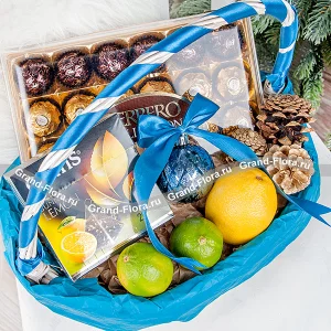Праздничный блеск - коробка с шоколадом и апельсинами