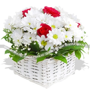 Апрельское утро - корзина из кустовой хризантемы и роз