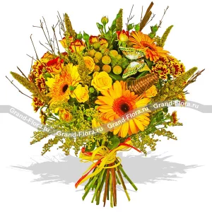 Аромат осени – букет из роз и альстромерий